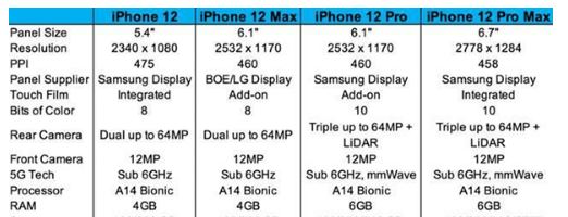 iPhone12系列產(chǎn)品所有都選用了OLED控制面板,iPhone表明,它是為iPhone尤其訂制的。iPhone12則選用全新升級(jí)SuperRetinaXDR顯示屏適用HDR文件格式,2532x1170屏幕分辨率,顯示屏密達(dá)到461080pi,相對(duì)密度相比iPhone11有做到1倍的提高,而屏幕最大光澤度達(dá)到1200nits。iPhone12Mini顯示屏為5.4英寸,iPhone12Pro顯示屏尺寸如傳言一樣,為6.一寸與6.7寸的iPhone12ProMax;分辯率為有史以來(lái)最大,2778*1284,并有458ppi。