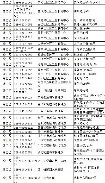 錦江區(qū)新冠疫苗接種點(diǎn)如下: