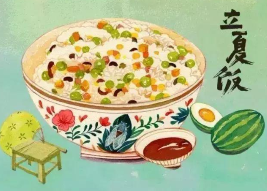 舊時立夏時節(jié),寧波一帶的鄉(xiāng)下用五種顏色的豆子加上粳米煮成五色飯,也稱立夏飯。隨著生活水平提高和物資的豐富,南方很多家庭將五色豆子替換成豌豆、雷筍、蠶豆、莧菜、香菇丁、咸肉丁、胡蘿卜等食材,寓意“五谷豐登”,頗具儀式感。俗話說“千補萬補,不如立夏一補”,吃立夏飯同時也寄語人們希望一年到頭身體健康。