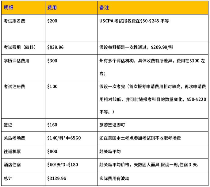 實(shí)際上美國每個(gè)州的考試費(fèi)用是差不多的,報(bào)考USCPA也不完全只看費(fèi)用的,選州關(guān)乎到的主要因素有學(xué)歷、學(xué)分,美國SSN,要不要申請證照等;USCPA考試的花費(fèi)如下: